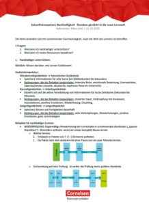Dabei gilt es die entscheidenden Ziele nicht aus den Augen zu verlieren: nachhaltige Lernerfolge, die nicht nur bis zur nächsten Prüfung, sondern im Idealfall für ein ganzes Leben Bestand haben. Und nicht minder wichtig: die nachhaltige Erhaltung und Weiterentwicklung unserer Ressourcen als kompetente, den veränderten Bedingungen gewachsene Lehrkraft.